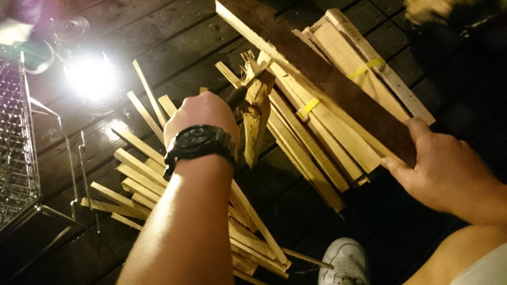 バトニングといって、薪をナイフで細くしていくテクニックをYoutubeで勉強していたので、見よう見まねでチャレンジしてみたのでした。